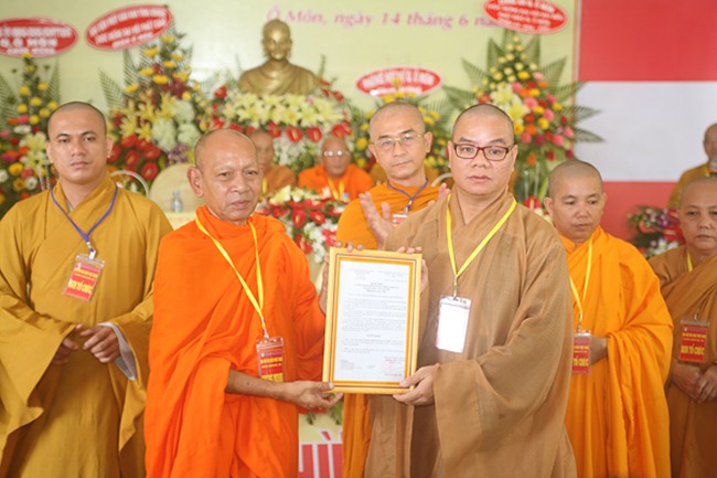 Tại buổi lễ, tân Ban Trị sự GHPGVN Q.Ô Môn đã ra mắt Chư tôn đức và quý Đại biểu. ĐĐ Thích Thiện Nghiêm tân Trưởng Ban Trị sự GHPGVN Q.Ô Môn có lời phát biểu nhận nhiệm vụ mới nhiệm kỳ IV 2016 – 2021.